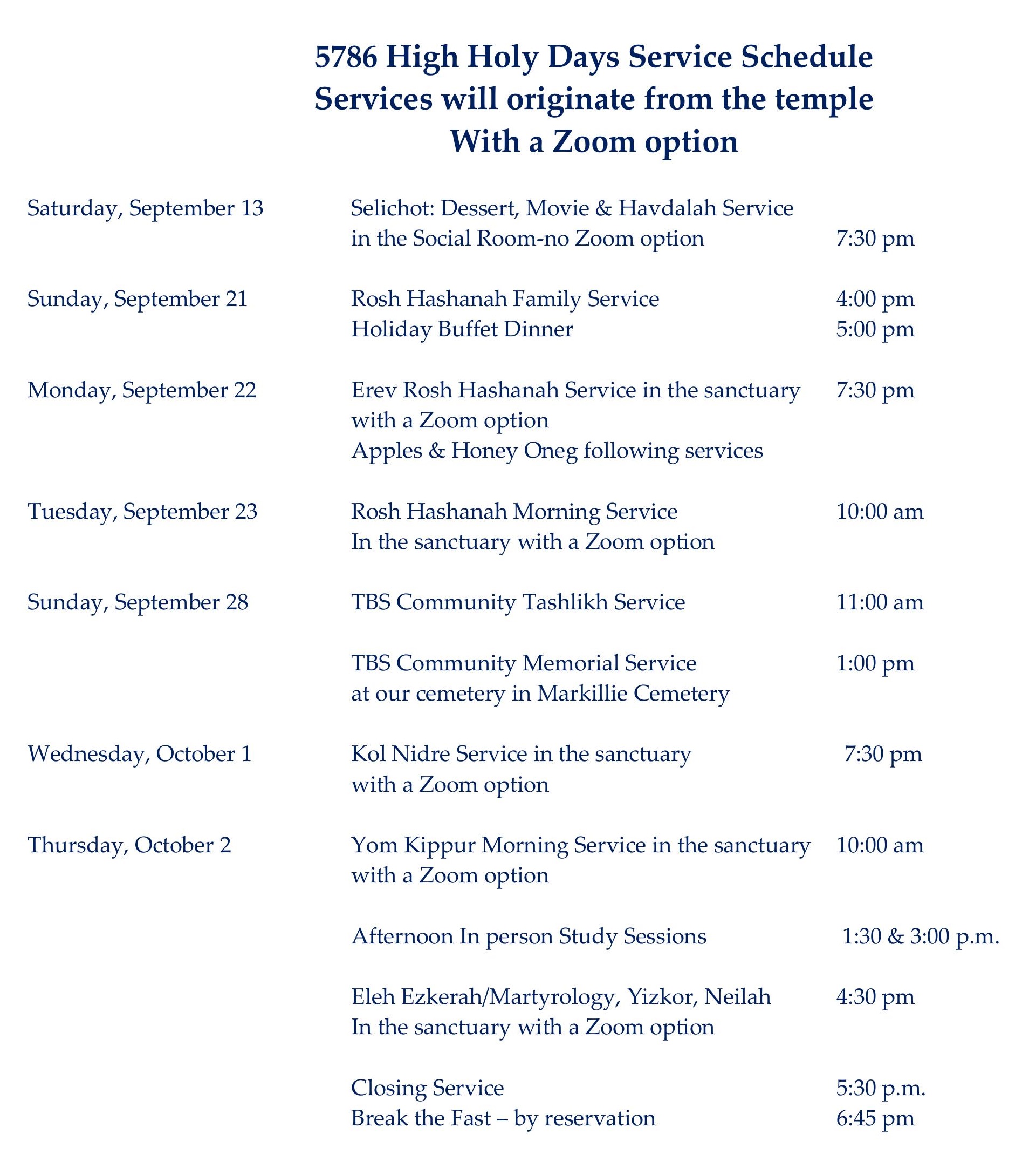 - Wed, 10/1, 7:30 pm -10:30 pm: Kol Nidre Service
